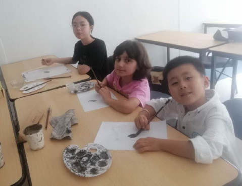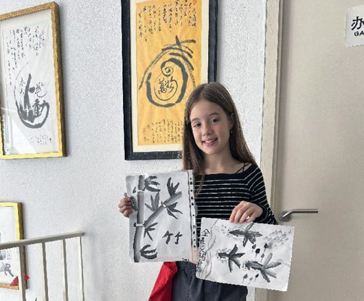 A convite da Embaixada, a aluna Ema fez pintura a pincel na Festa