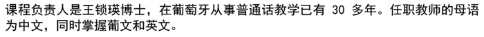 | O Curso é coordenado pela Prof.ª Doutora Wang Suoying, com uma experiência de mais de 30 anos de ensino de Mandarim em Portugal. As docentes são nativas de chinês que também dominam português e inglês. | |||||||||||||||||||||||